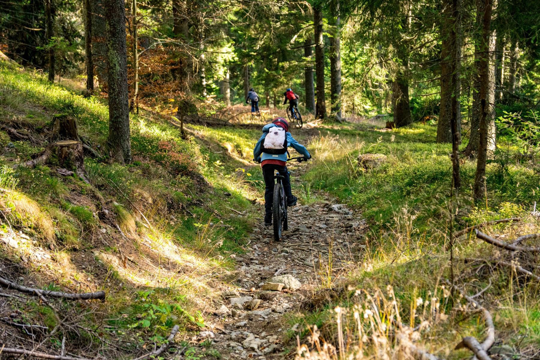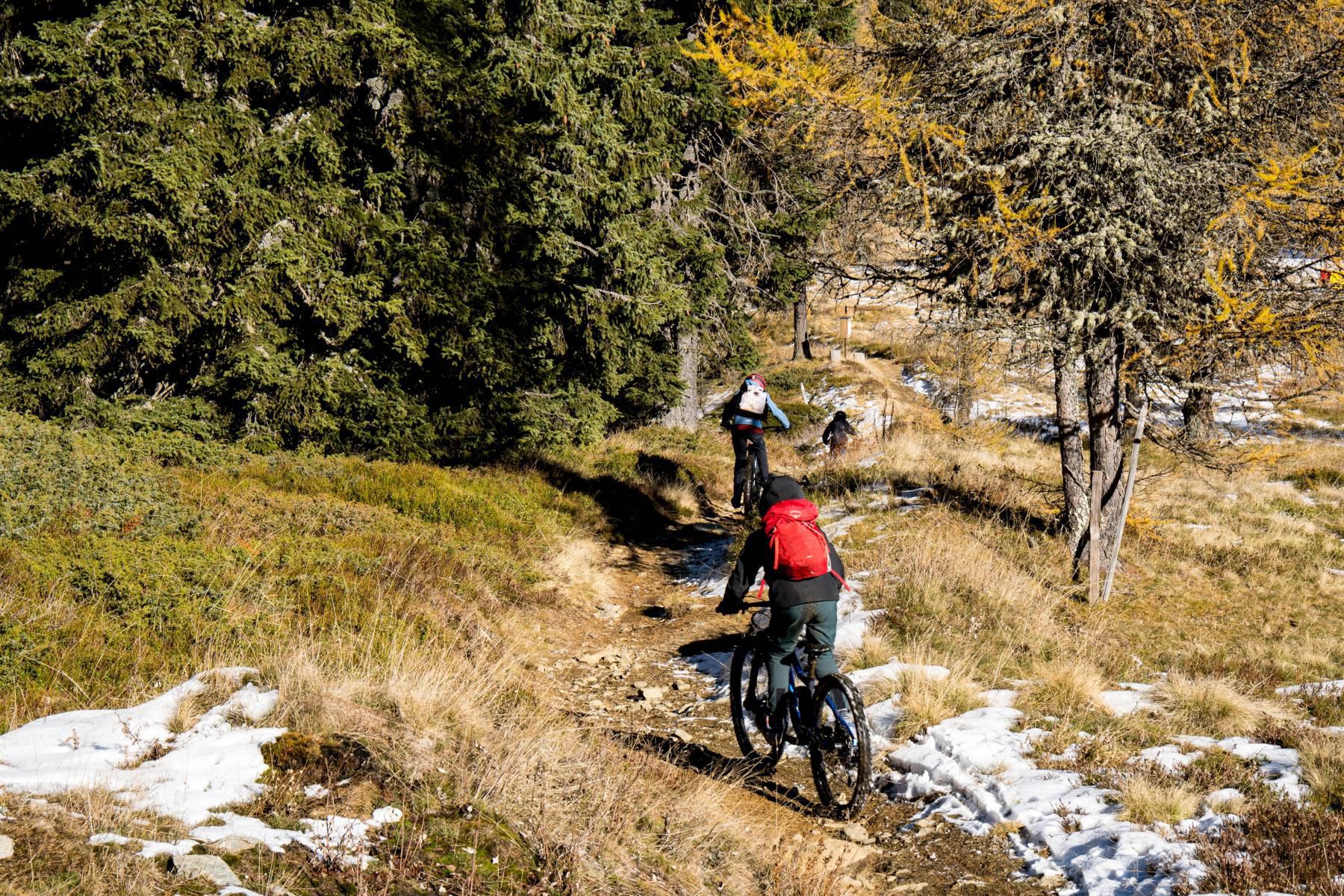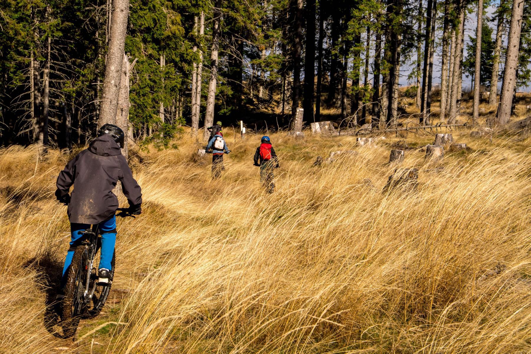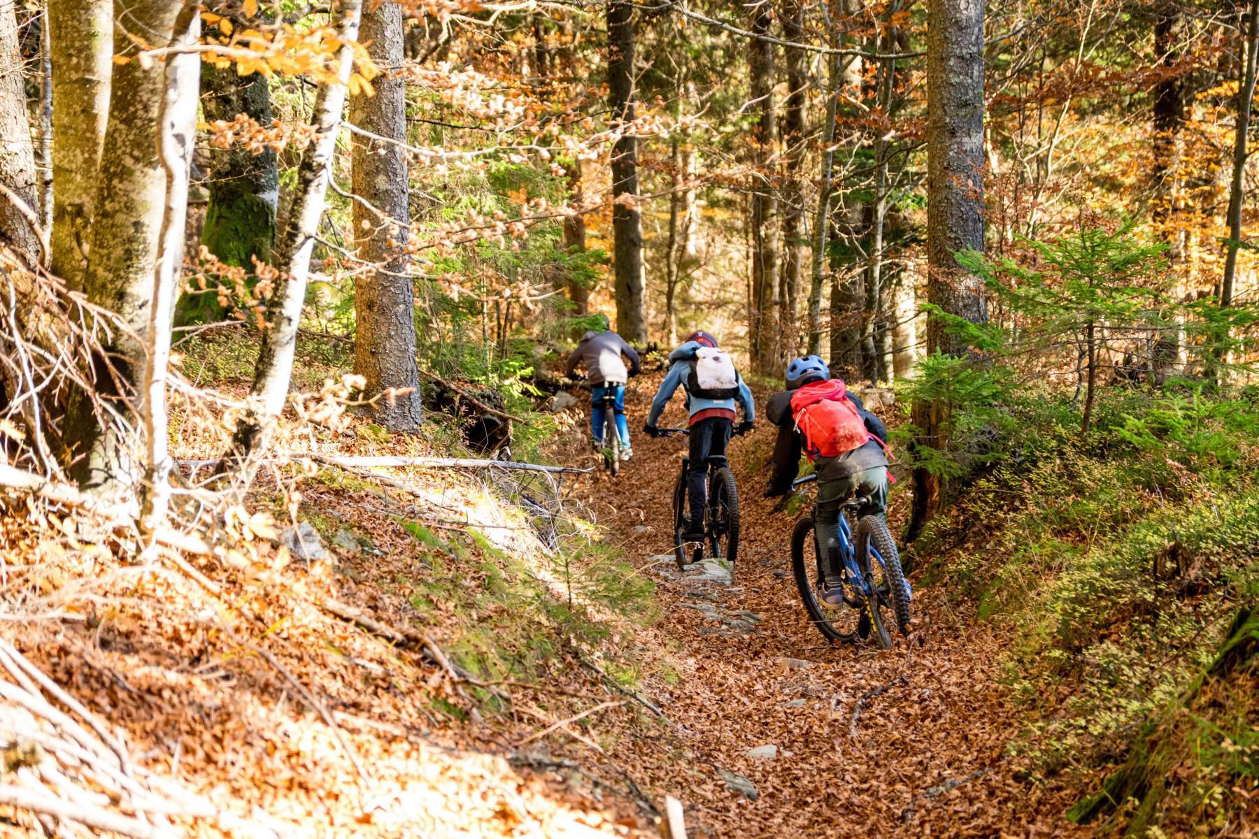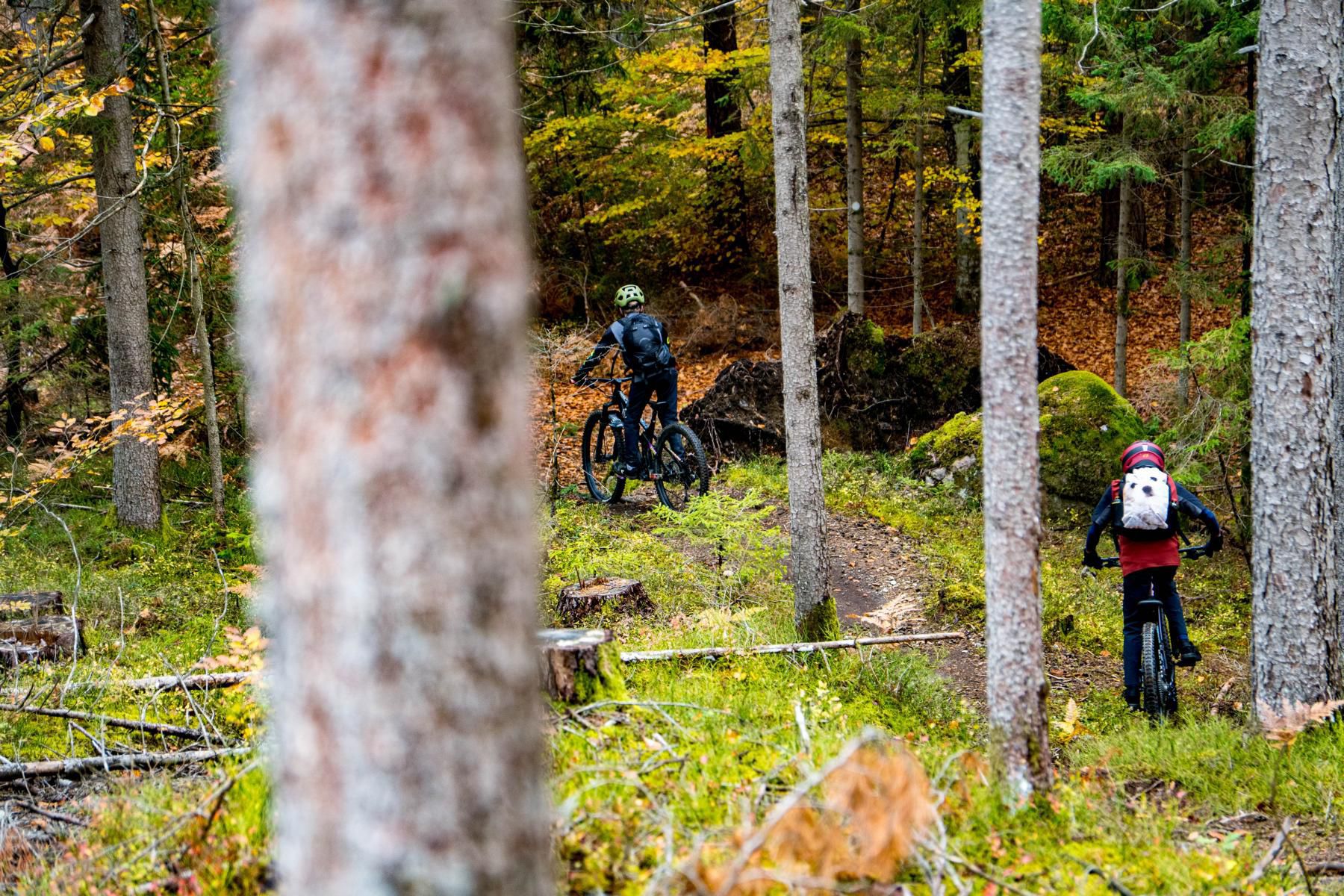 Die Kinder bewältigten an diesem Tag rund 700 Höhenmeter auf verschiedenen Singletrails, größtenteils aus eigener Kraft bergauf. Nur gelegentlich unterstützte der Guide mit seinem Light-E-MTB und zog die Kinder in kurzen Intervallen ein Stück nach oben. Insgesamt gaben alle ihr Bestes, und bei den Anstiegen kamen wirklich alle ordentlich ins Schwitzen, die Kinder genauso wie der Guide. Eine kulinarische Stärkung gab es bei einer Gasthauseinkehr zu Mittag.