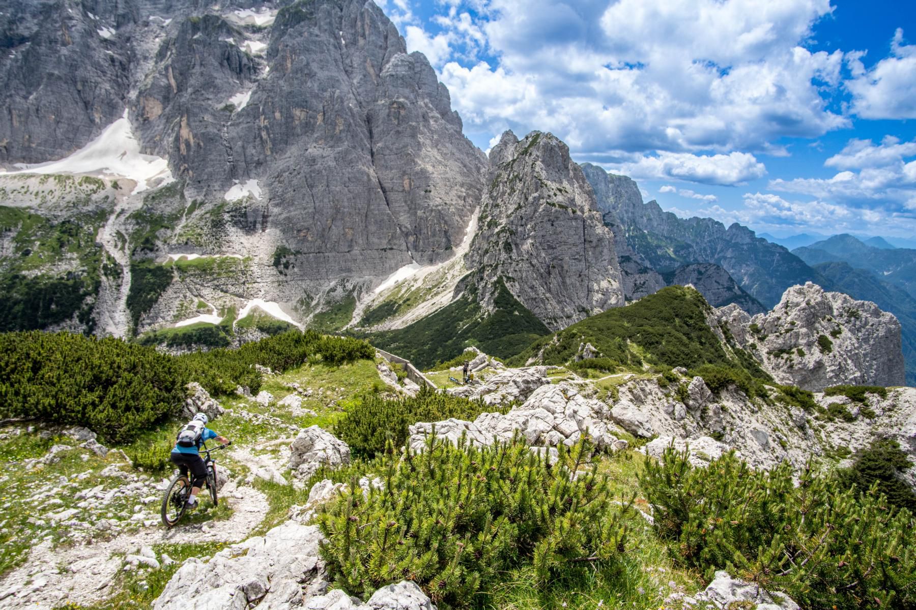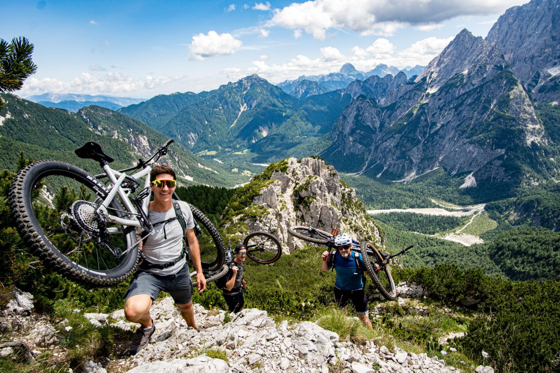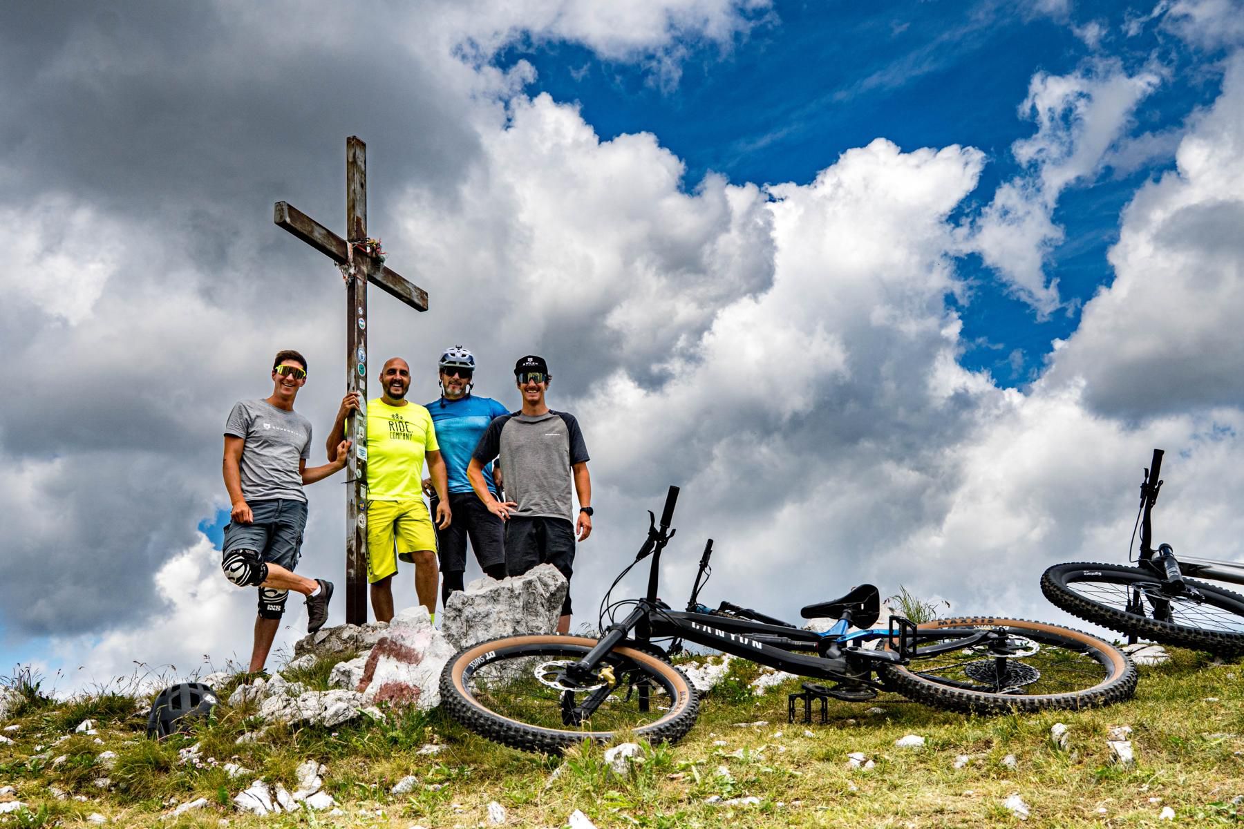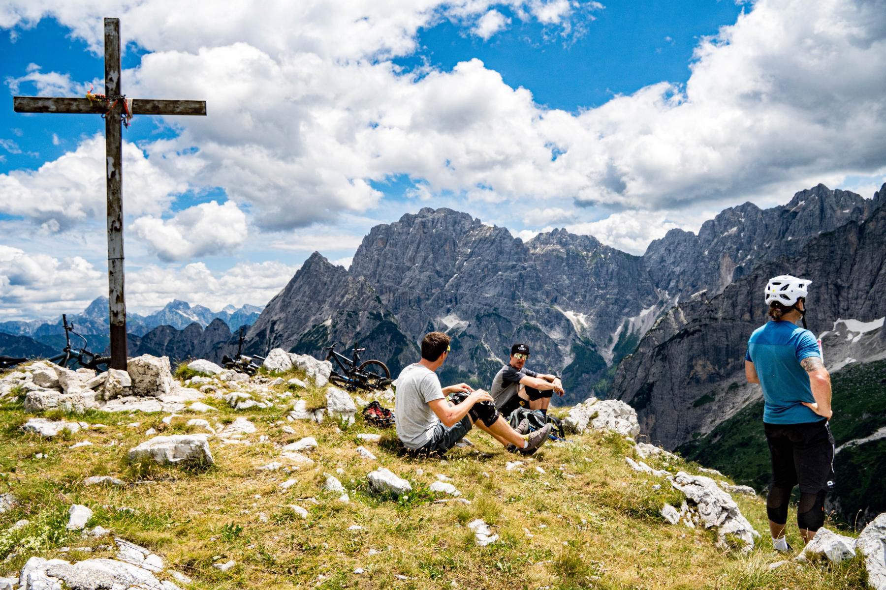 Anfang Juli 2025 reisen wir aus verschiedenen Winkeln Kärntens in Fahrgemeinschaften mit Autos in ein sehr abgelegenes Tal im norditalienischen Friaul. Für die Tour sind rund 1000 Höhenmeter geplant. Die ersten 400 Höhenmeter rollen wir entspannt auf einer Straße ein, bevor es steiler wird. Wir treffen eine Schafherde, die uns neugierig mustert. Danach heißt es: Bike schultern und rund 500 Höhenmeter tragen. Die Landschaft ist überwältigend schön. Grüne Hänge, felsige Spitzen, absolute Einsamkeit. Anstrengend? Sicher, aber die gute Laune und das Panorama lenken ausreichend ab. Fast am Gipfel stoßen wir auf einen alten Bunker aus der Kriegszeit – stille Zeugen einer anderen Epoche.