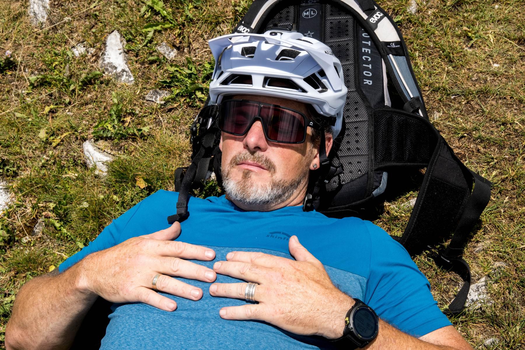 Oben angekommen passiert erst mal nichts. Also wirklich nichts. Einsamkeit pur und absolut kein Geräusch ist zu hören, außer den Insekten. Philosophisch gesehen passiert natürlich unendlich viel. Wir legen uns ins Gras, atmen durch, essen unsere Jause und tanken Kraft. Absolute Stille. Kein Wind, kein Geräusch, außer das leise Summen der Insekten. Wir liegen im Gras und hören einfach zu.
