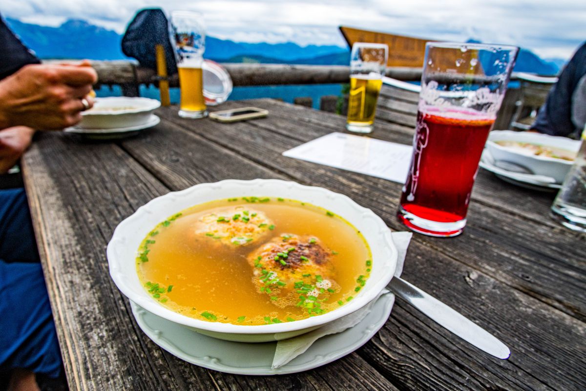 Diese Stärkung musste unbedingt sein, weil auf diese freuten wir uns schon ewig während der Abfahrt. Der Hüttenwirt und die Kellnerin waren super freundlich und neugierig, speziell nachdem sie gehört hatte von welchen schwierigen Berggipfel wir kamen.